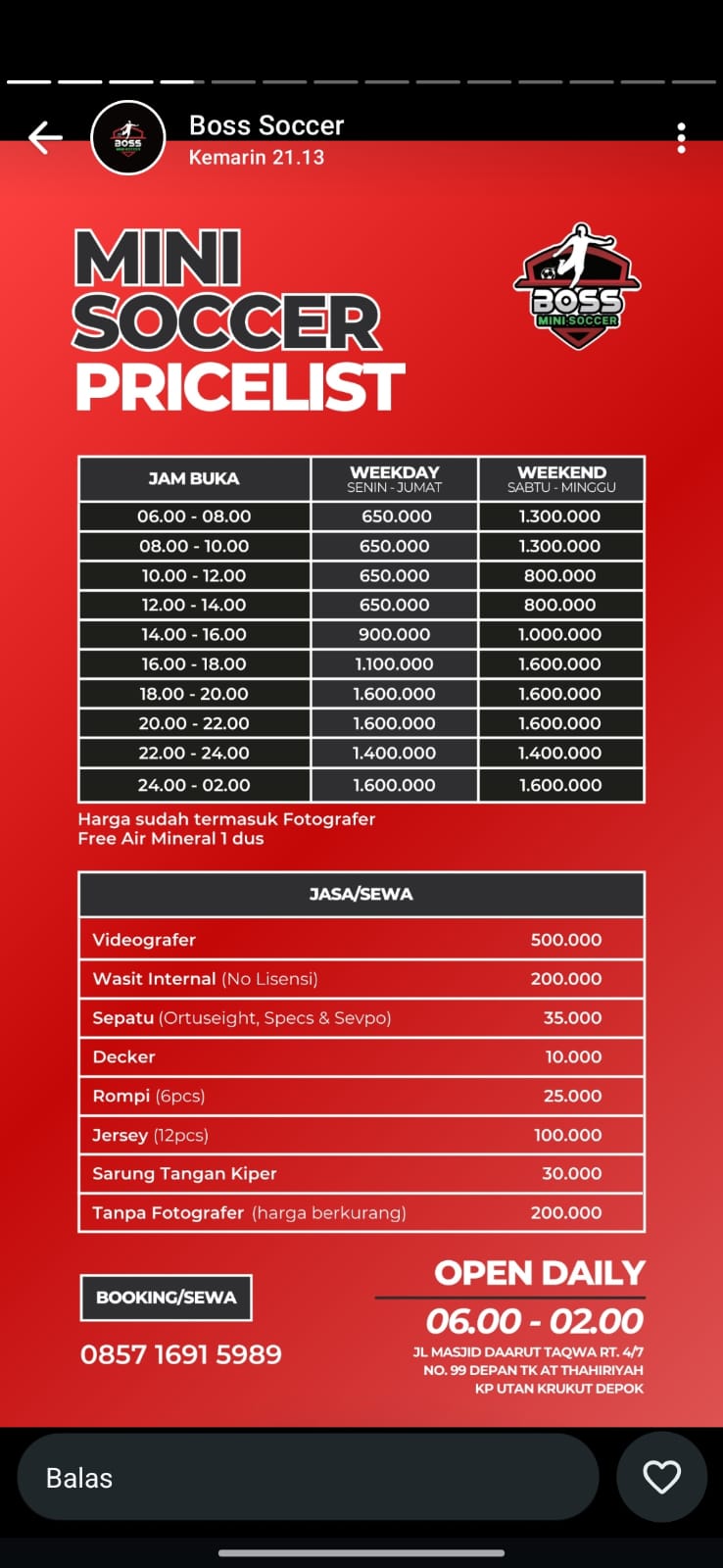 Boss Minisoccer yang didirikan oleh Bapak Agung pada akhir tahun 2022 tepatnya 3 Oktober 2022 dilaksanakan peletakan batu pertama pembangunan lapangan tersebut. Alasan berdirinya Lapangan Boss Minisoccer ini tidak lain karena hobby beliau dibidang olahraga khususnya Sepak Bola.